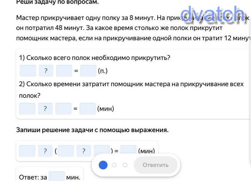 Всего полок нужно прикрутить = 48 минут / 8 минут = 6 полок