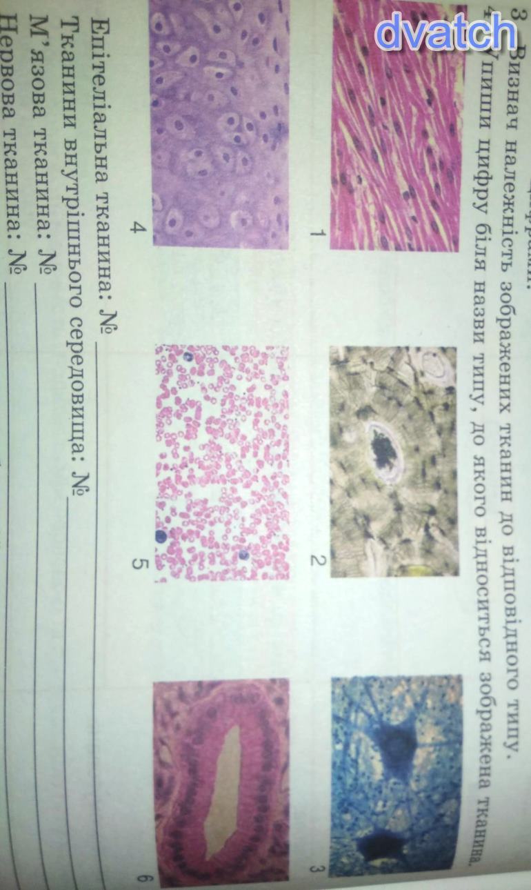 Ткани внутренней среды: 4(хрящ), 2(кость), 5(эритроцитов)