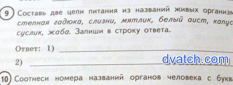 Составь две цепи питания из названий животных организмов Степная гадюка слизни мятлик белый аист капуста суслик жаба Запиши в строку ответа