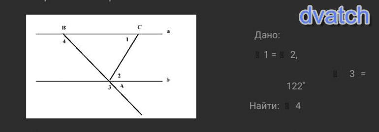 <3=<4, как соственные углы при паралельных прямых а||b.