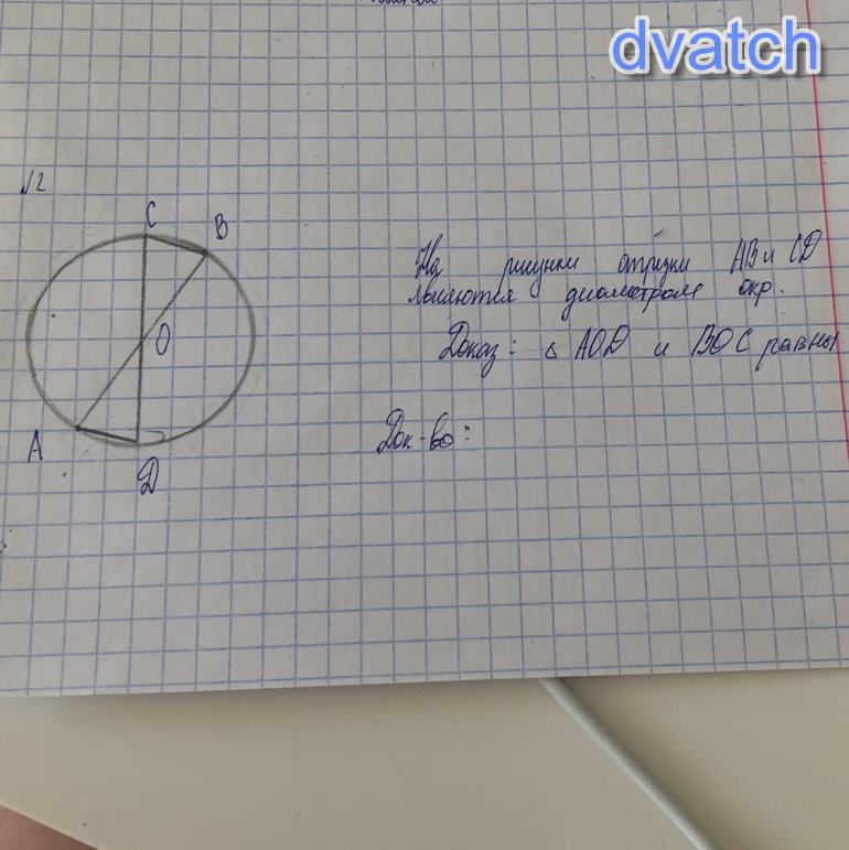Тр-к АОД=тр-ку ВОС по 1 признаку равенства треугольников (по 2 сторонам и углу между ними)