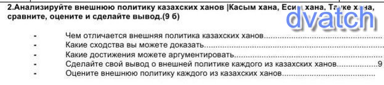 2. Анализируйте внешнюю политику казахских ханов |Касым хана, Есим хана, Тауке хана, сравните, оцените и сделайте вывод. (9 б)