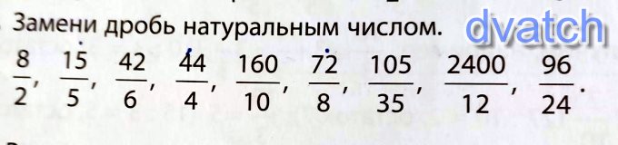 Для того чтобы заменить дробь натуральным число нужно числитель поделить на знаменатель
