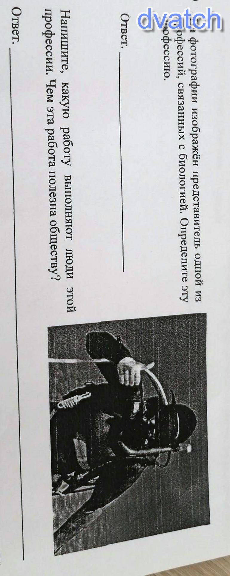 На фотографии изображён представитель одной изпрофессий, связанных с биологией. Определите этупрофессию. Ответ. Напишите, какую работу выполняют люди этойпрофессии. Чем эта работа полезна обществу?Ответ.