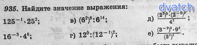 935д) (2³)⁵•(2⁻⁶)²/4²=2¹⁵•2⁻¹²•2⁻⁴=2¹⁵⁻¹²⁻⁴=2⁻¹=1/2=0,5