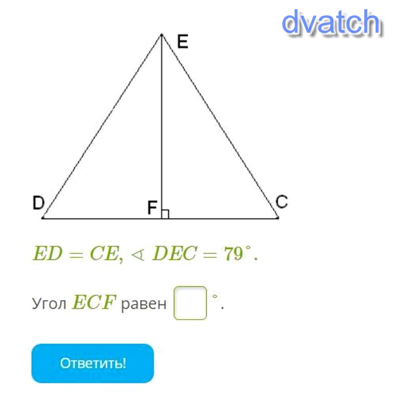 ∆DEC- рівнобедрений кут D=куту C- як кути при основі рівнобедреного трикутника 180°-79°=101° 101°÷2=50,5° кут D=куту C=50,5°