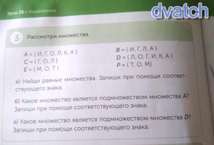 Из элементов множества А = {Коля, Петя, Маша, Ира}, например, можно составить новое множество М = {Петя, Маша}. Оно характеризуется тем, что все элементы М принадлежат множеству А. Говорят, что М – подмножество множества А и пишут М А.