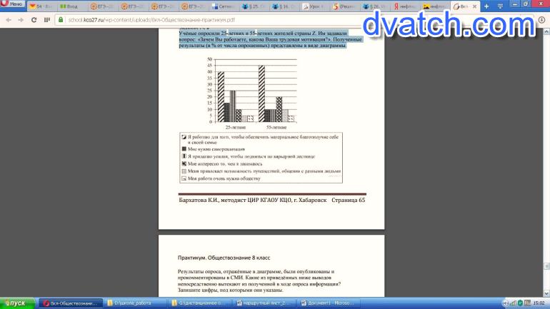 посчитайте Обществознание 8 класс . «Работа со схемами и диаграммами»Учёные опросили 25-летних и 55-летних жителей страны Z. Им задавали вопрос: «Зачем Вы работаете, какова Ваша трудовая мотивация?». Полученные результаты (в % от числа опрошенных) представлены в виде диаграммы. Результаты опроса, отражённые в диаграмме, были опубликованы и прокомментированы в СМИ. Какие из приведённых ниже выводов непосредственно вытекают из полученной в ходе опроса информации? Запишите цифры, под которыми они указаны. 1) Возможность самореализации является одним из двух важнейших мотивов трудовой активности работников независимо от их возраста. 2) Работники старшего возраста более внимательно относятся к своим коллегам. 3) Для значительной части работников материальные стимулы являются основными. 4) Вопросы карьерного роста актуальны для молодёжи. 5) С возрастом роль интереса к работе как мотива трудовой активности ослабевает.