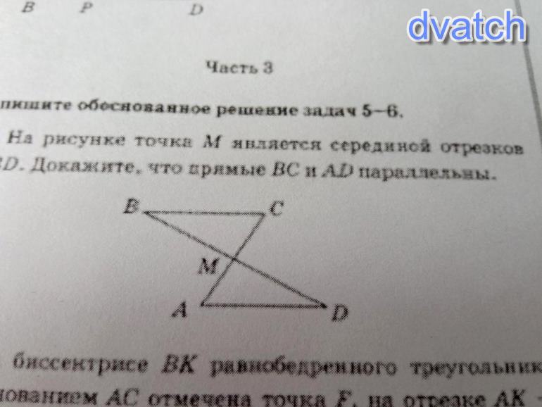 получается, что углы СВМ и МДА, так как накрест лежащие углы. А если накрест лежащие углы равны, соственно и прямые ВС и АД-параллельны.