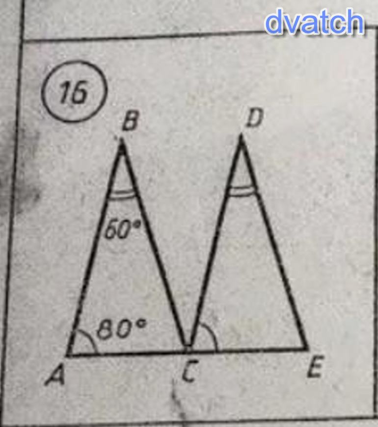 Угол С=углу Е=180 градусов-(60 градусов+80 градусов)=40 градусов.