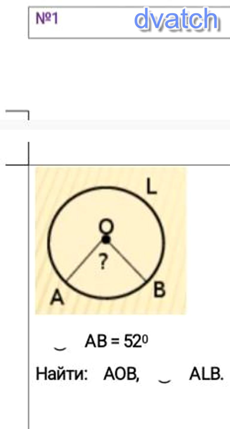 АОВ = 52°, дуга ALB = 308°