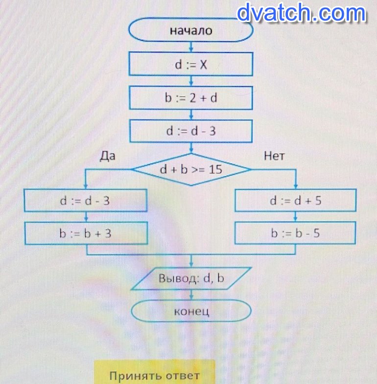 Вычислите значения переменных после выполнения данной блок-схемыХ=11