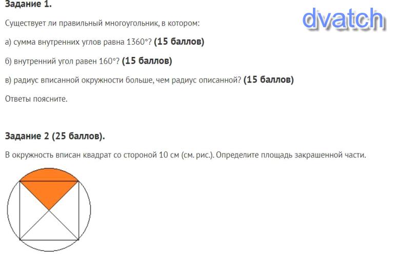 Вывод: Площадь равна: 12. 5π квадратных см.