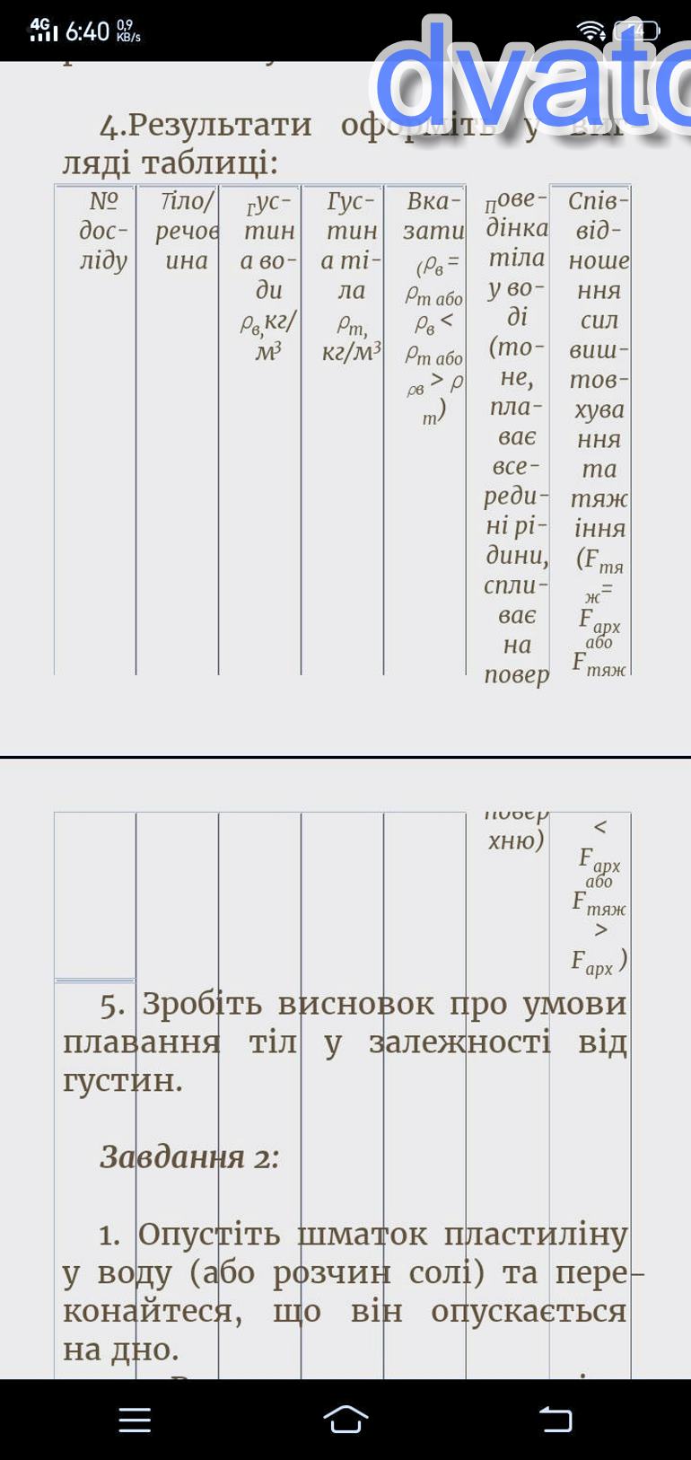 полиетилен--1000кг/м3--930кг/м3--густина води>густина поліетилену--плаває на поверхні--Fтяж<Fарх