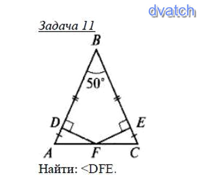 △DAF=△ECF (по катету (DA=EC) и острому углу (∠A=∠C)) ⇒ ∠CFE=∠DFA=180°-(∠FEC+∠C)=180°-(90°+65°)=25°