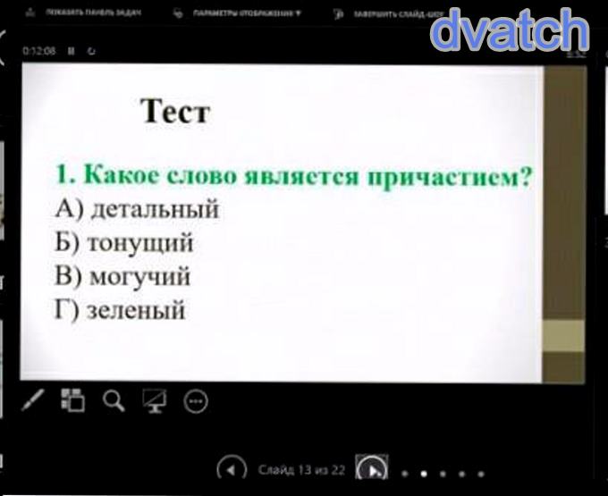Б) тонущий - Часть речи слова тонущим — причастие, образовано от глагола тонуть.