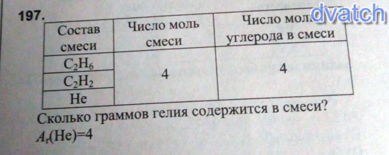 В 1 моль этана С₂Н₆ содержится 2 моль атомов углерода, в 1 моль ацетилена С₂Н₂ также содержится 2 моль атомов углерода, следовательно, количество в смеси этана и ацетилена составляет 2 моль, так как общее количество газов в смеси составляет 4 моль, то количество гелия в смеси будет n(He) = 4 моль-2 моль =2 моль;