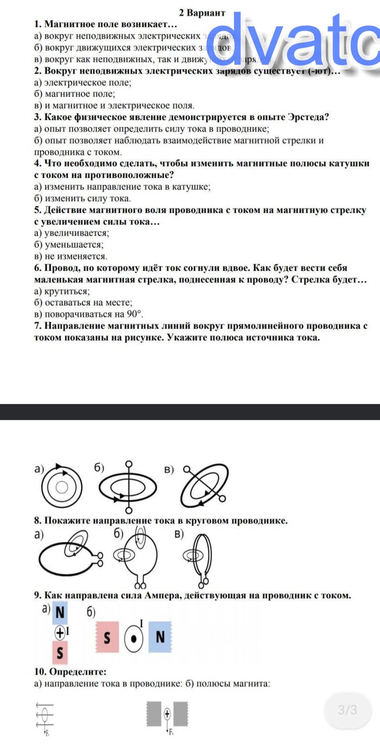 Магнитное поле возникает вокруг проводника с током, то есть вокруг движущихся электрических зарядов.