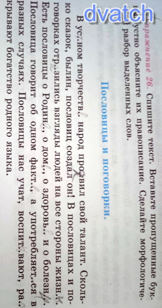 Надо переписать этот текст и вставить в нем зелёной ручкой пропущенные буквы