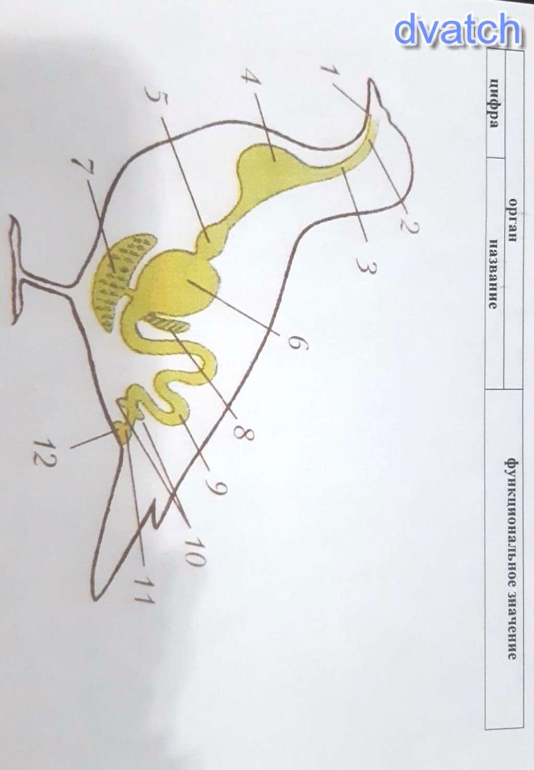 Назовите органы пищеварительной системы птицы обозначенные на рисунке цифрами 1-12? сделайте таблицу