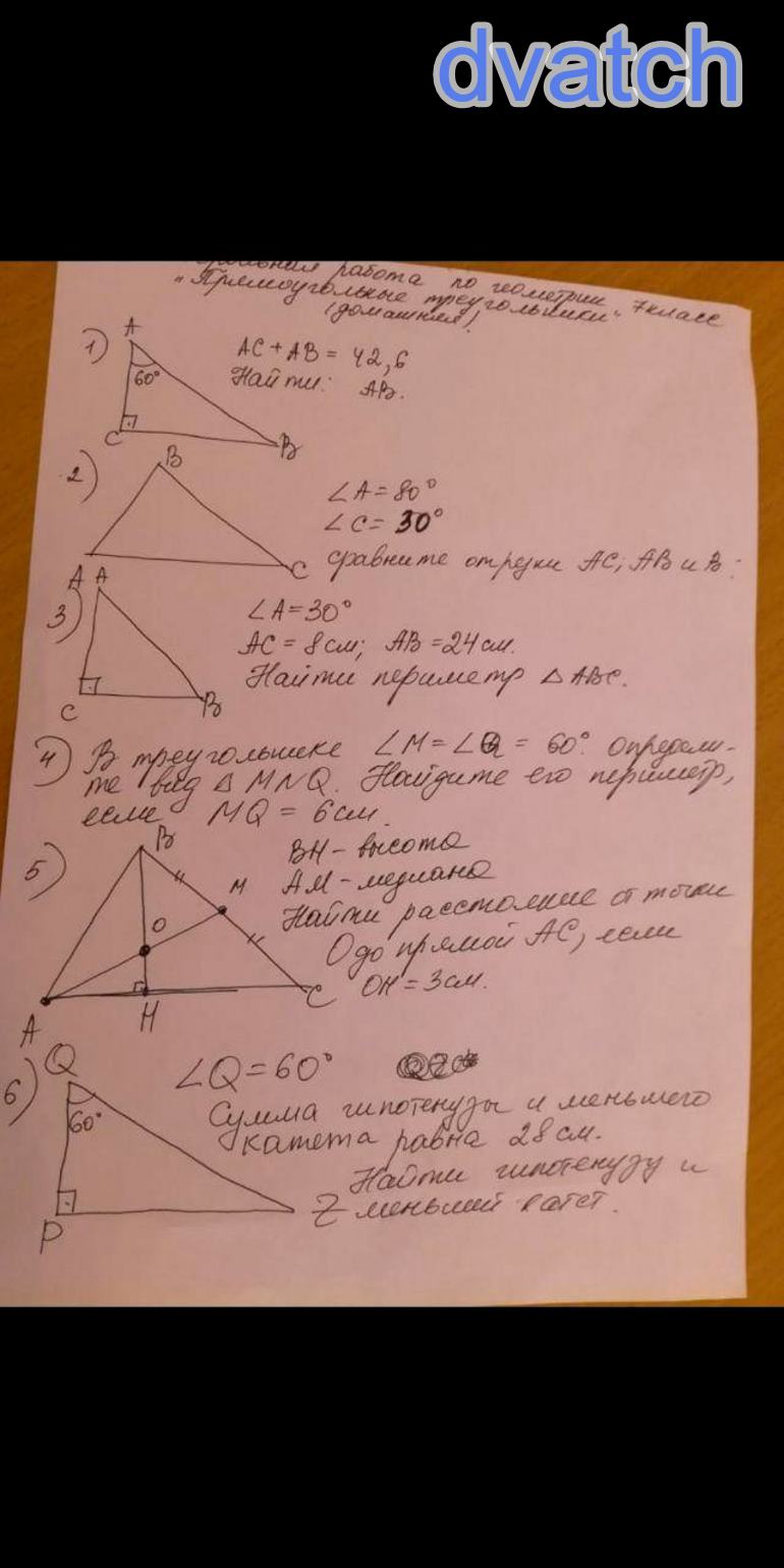 6) Z (или что это за буква там зачёркнута) = 90°-60°=30° следовательно QP - меньший катет