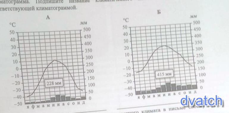 На рисунках представлены климатограммы, построенные по данным метеонаблюденийв разных регионах России. Рассмотрите климатограммы и выполните задания. 5. 1. Определите, какому климатическому поясу / типу климата соответствует каждаяклиматограмма. Подпишите название климатического пояса / типа климата подсоответствующей климатограммой.