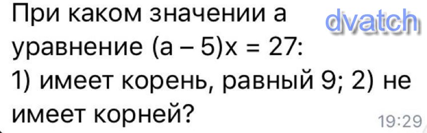 При каком значении а уравнение (а-5)х=27 не имеет корней?