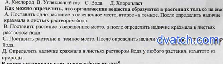 2) Крахмал образуется только на свету в процессе фотосинтеза. Таким образом, та часть листа, которая была скрыта фольгой после воздействия йодного раствора не посинеет, а часть, которая была на свету посинеет.