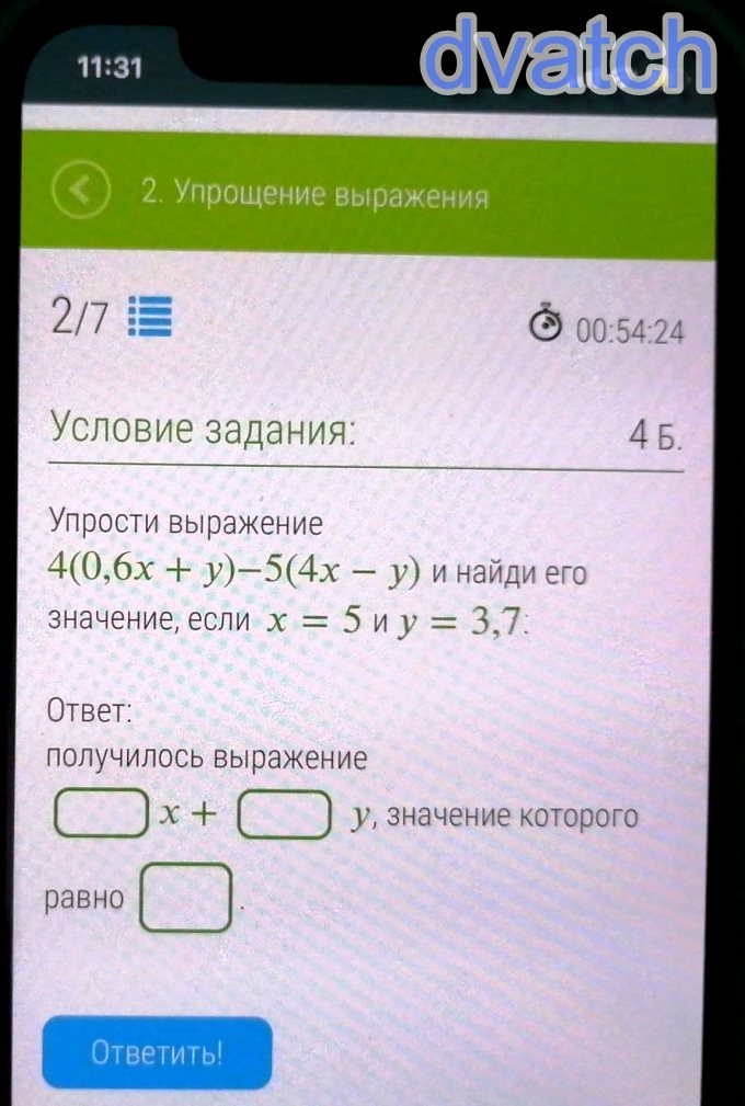 4(0,6х + у) - 5(4х - у) =