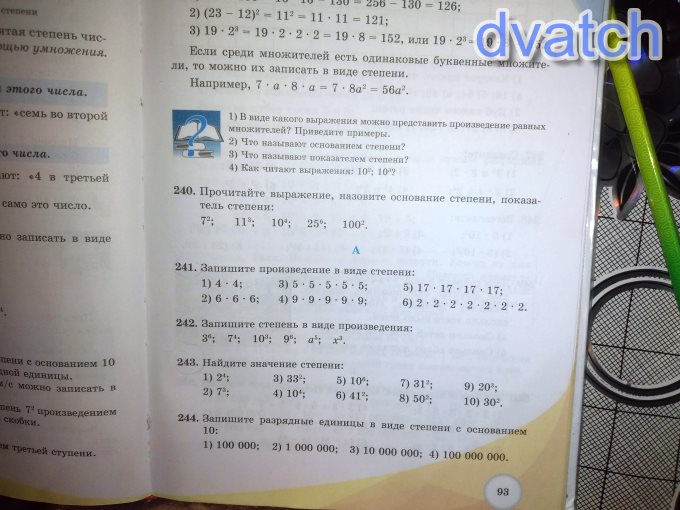 Запишите произведение в виде степени: 1) 4 × 42) 6 × 6 × 63) 5 × 5 × 5 × 5 × 54) 9 × 9 × 9 × 9 × 95) 17 × 17 × 17 × 176) 2 × 2 × 2 × 2 × 2 × 2 × 2(записать и решить только чётные произведения)