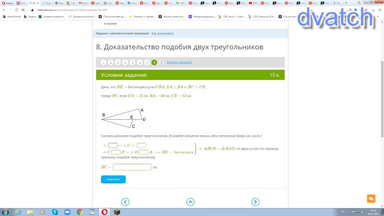 ∠СВЕ=∠DBA т. к BC - биссектриса ⇒ ΔВСЕ ~ ΔВAD ( по 2 углам )