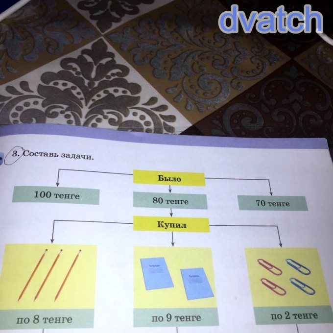 3. Составь задачи. Было100 тенге80 тенге70 тенгеКупил-по 8 тенгепо 9 тенгепо 2 тенгеОсталось?