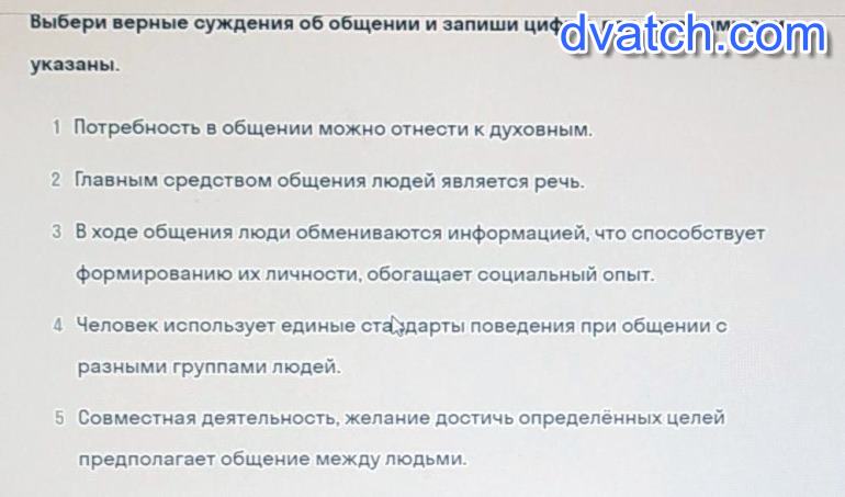выберите верные суждения об общении и запишите цифры под которыми они указаны:2,3,5