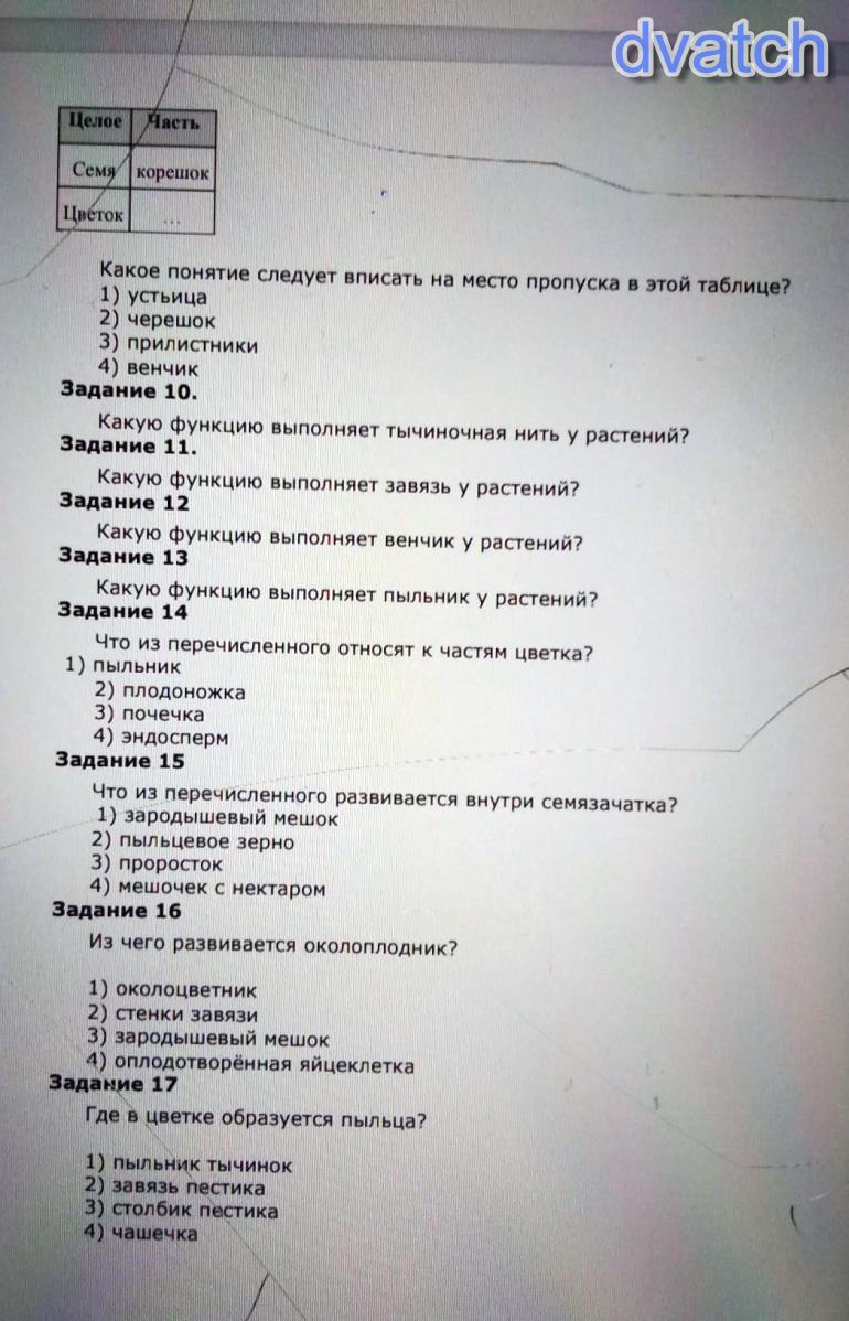 Задание 11: Завязь как самая важная часть пестика,женского органа цветка,обеспечивает все условия для появления семян из семязачатков (здесь же и происходит оплодотворение) : защищает их от внешних механических воздействий,поддерживает достаточный уровень влажности,питает будущие семена и является основой для появления плода.