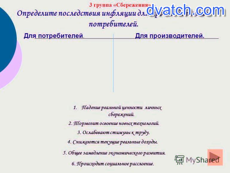 1. Падение реальной ценности личных сбережений – поскольку в нашем государстве основным финансовым символом принято как не странно считать, деньги. А при падении стоимости рубля, то есть инфляции, со ственно реальная стоимость денег, которая была ранее (до инфл. ) становится меньше.