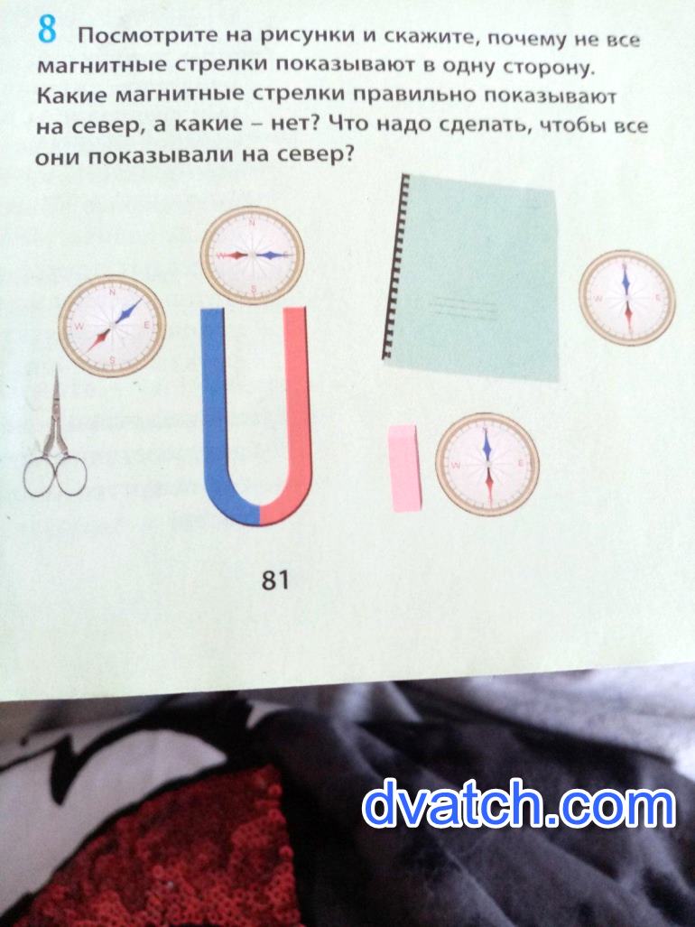 посмотрите на рисунки и скажите почему не стрелки показывают в одну сторону . какие магнитные стрелки правильно показываютна север. а какие нет. что надо сделать, чтобы все они показывали на север