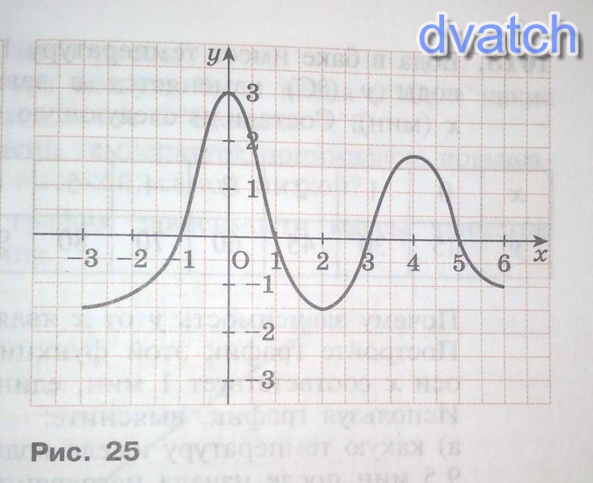 1014. Функция у = g(x), где -3 < x < 6, задана графиком, изображённым на рисунке 25. Найдите: а) значение функции, соствующее значению аргумента, равно -2; 0; 2; 3,5; б) значения аргумента, которым соствует значение функции, равное 2; -1; 0; в) два каких-нибудь значения аргумента, которым соствуют положительные значения функции; г) три каких-нибудь значения аргумента, которым соствуют отрицательные значения функции; д) значение аргумента, которому соствует наименьшее значение функции; е) значение аргумента, которому соствует наибольшее значение функции.