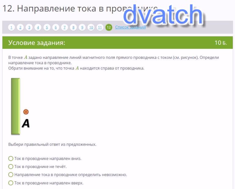 Физика 30 поинтов ЗАДАНИЯ НА ДВУХ КАРТИНКАХЗАДАНИЕ 1Направление электрического тока в витке показано на рисунке стрелкой. Определи направление линий магнитного поля в точке A. Из предложенных вариантов ответа выбери правильный. 1В точке A линии магнитного поля направлены вверх. 2Направление линий магнитного поля в точке A совпадает с направлением тока. 3В точке A линии магнитного поля направлены вниз. 4Направление линий магнитного поля в точке A определить невозможно. ЗАДАНИЕ 2В точке A задано направление линий магнитного поля прямого проводника с током (см. рисунок). Определи направление тока в проводнике. Обрати внимание на то, что точка A находится справа от проводника. Выбери правильный ответ из предложенных. 1Ток в проводнике направлен вниз. 2Ток в проводнике не течёт. 3Направление тока в проводнике определить невозможно. 4Ток в проводнике направлен вверх.