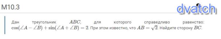 cos (∠A - ∠B) + sin (∠A + ∠B) = 2