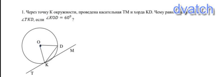 треугольнои ОКD равносторонний так как две стороны точно равны и являются радиусами и угол равен 60
