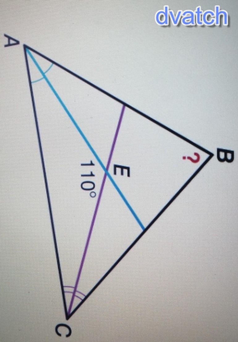 Пусть угол BCA - 2β, угол CAB - 2α. Тогда в треугольнике AEC углы α, β и 110° откуда по сумме углов треугольника α + β = 180° - 110° = 70°. В треугольнике ABC углы B, 2β и 2α, т. е по сумме углов треугольника B = 180° - 2*(β + α) = 180° - 2*70° = 40°