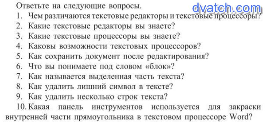 1. Отличия текстового редактора и процессора в том что редактор выполняет простейшие операции текста а процессор имеет более расширенный функционал