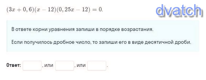 (3x + 0,6)(x - 12)(0,25x - 12) = 0