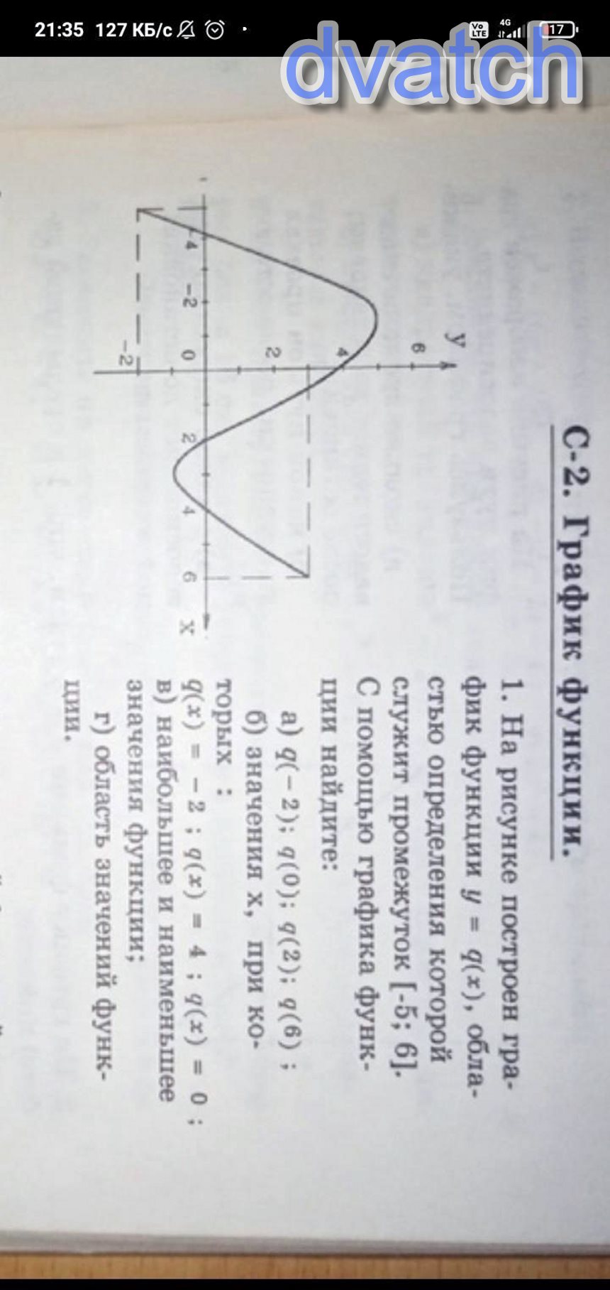 рисунке 6 изображен график функции y = g(x), областью определения которой служит отрезок [-6; 5]. С помощью графика найдите: