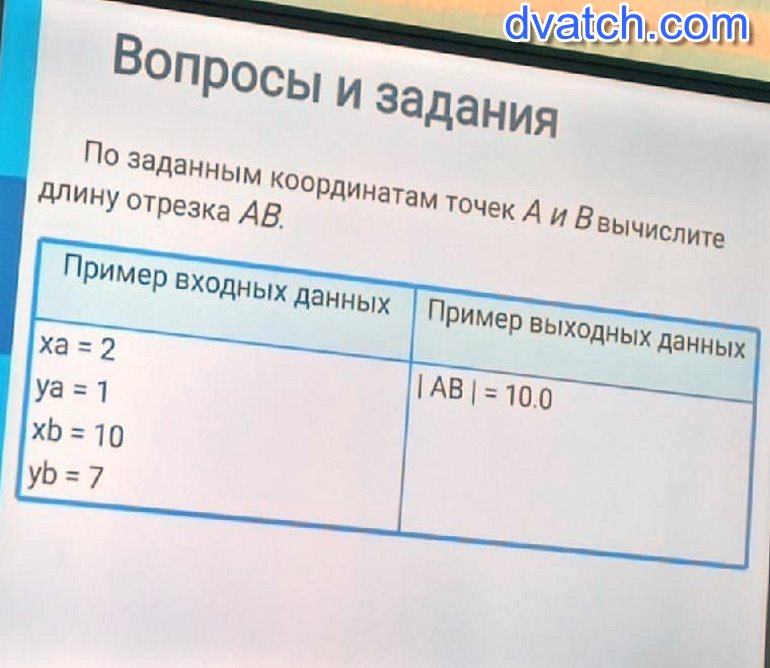 print(m. sqrt((xa-xb)**2 + (ya - yb)**2))
