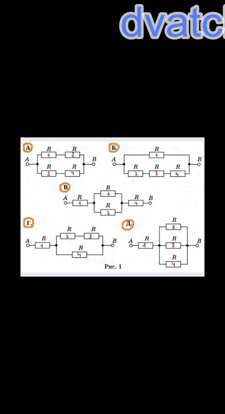 вкажіть у кожному випадку тип з'єднання для 1,2,3,4 резисторів 30 Поинтов ФИЗИКА