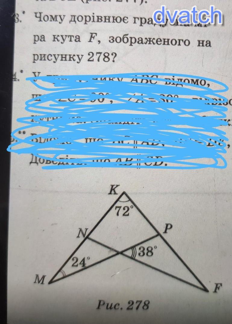 угол KPM = 180 - 72 - 24 = 84
