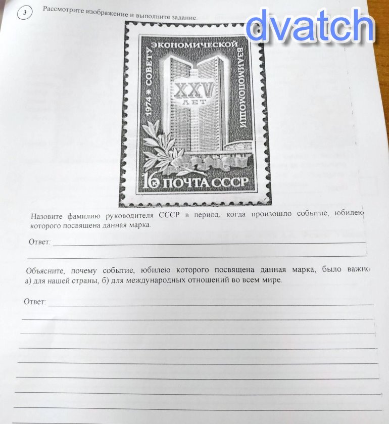 3 Рассмотрите изображение и выполните задание. Назовите фамилию руководителя СССР в период, когда произошло событие, юбилею которого посвящена данная марка. Объясните, почему событие, юбилею которого посвящена данная марка, было важно а) для нашей страны, б) для международных отношений во всем мире.