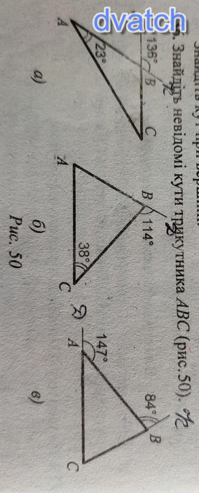 в) ∠АВС=180-114=66° (смежные углы); ∠А=180-66-38=76°