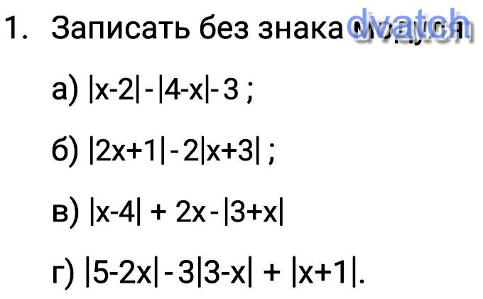 Решить задание. Записать примеры без знака модуля. Вот картинка.